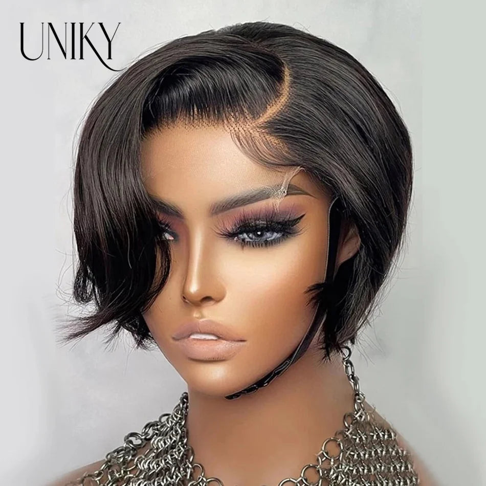 Pixie Cut Wigs Human Hair Wigs For Women straight Short Bob Wig Brazilian PrePlucked 13x4 Lace Frontal Human Hair Wig 180Density